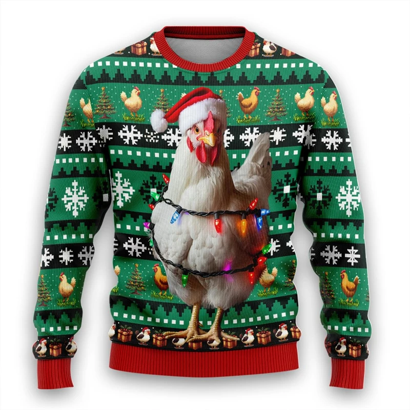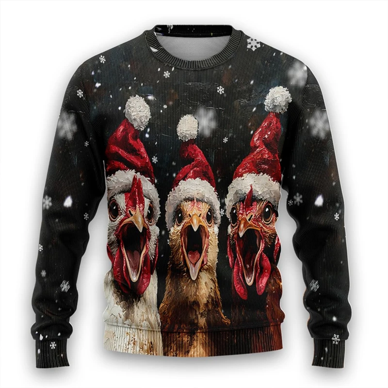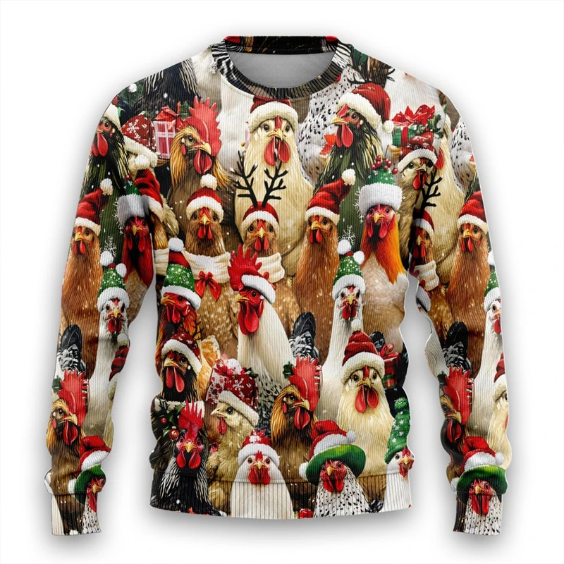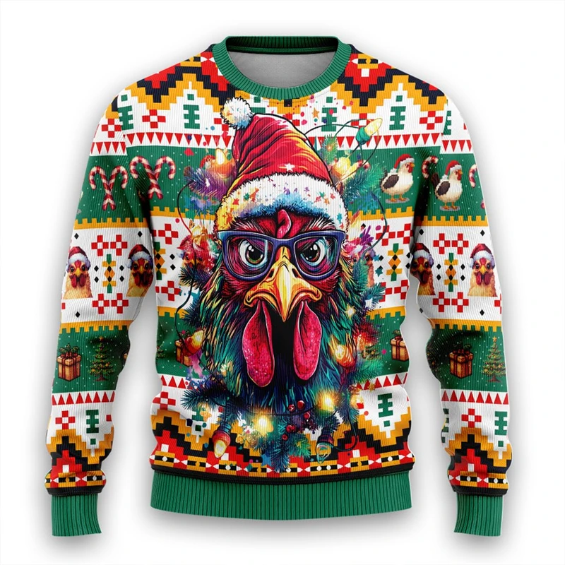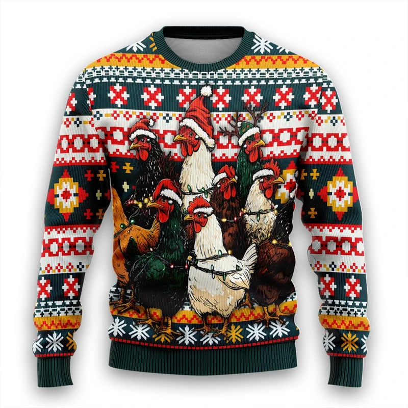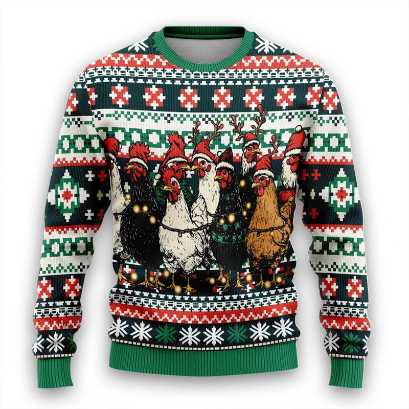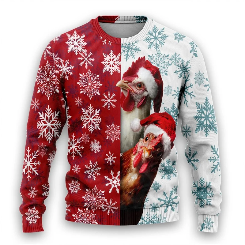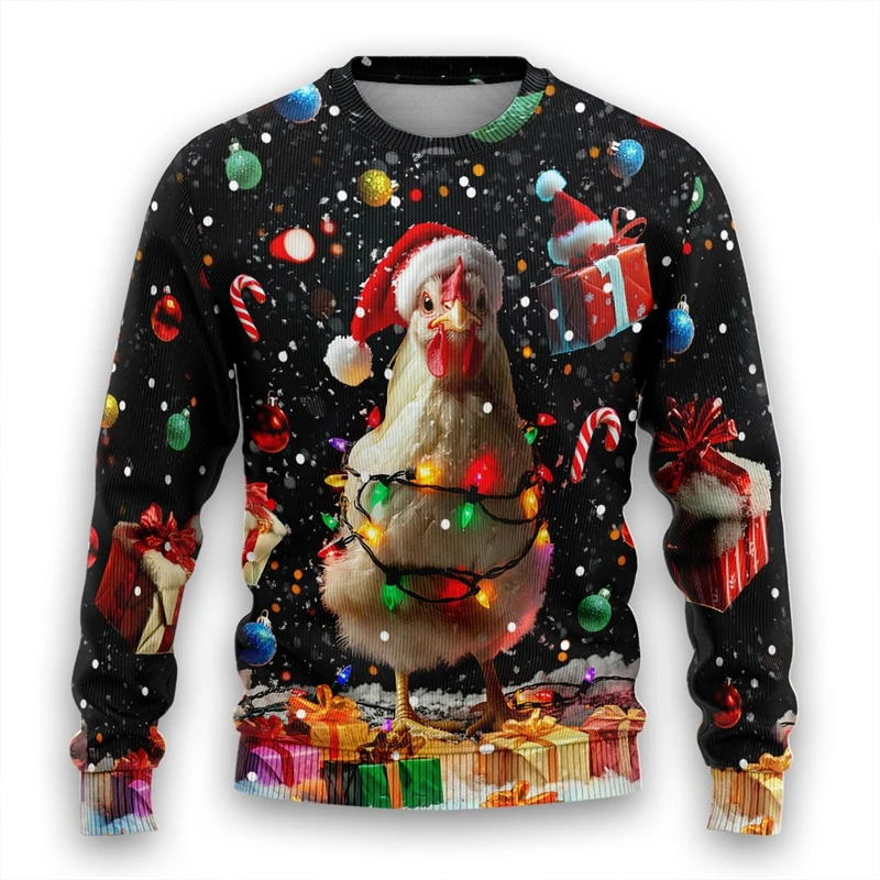 Chicken Ugly Christmas Sweatshirt For Women Clothes Funny Rooster Graphic Sweatshirts Casual Unisex Pullovers Long Sleeve Tops
