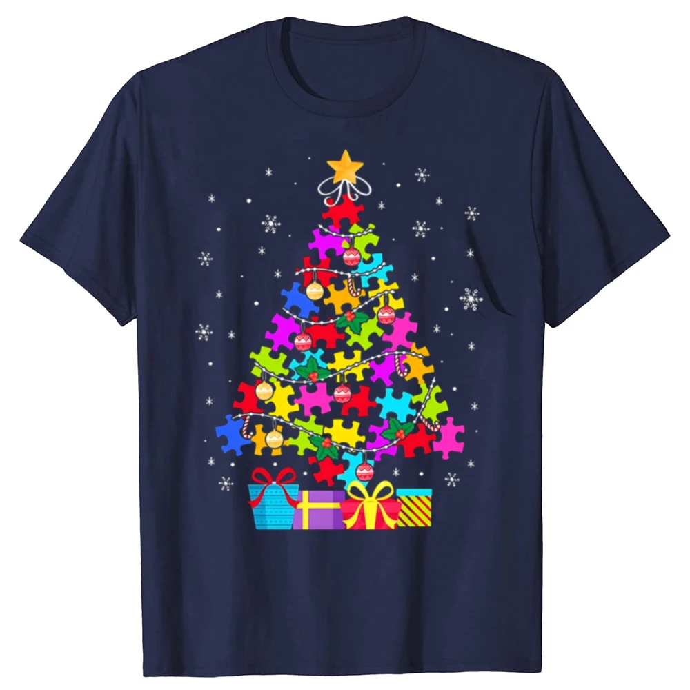 Cute Autism Christmas Graphic T Shirts Mens Clothing New in Tops & Tees Cotton Women Printed T-shirt Y2K Clothes Funny Tshirt