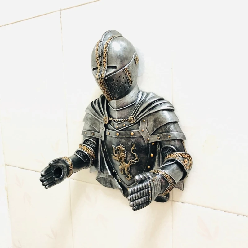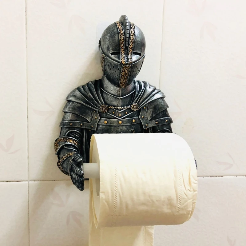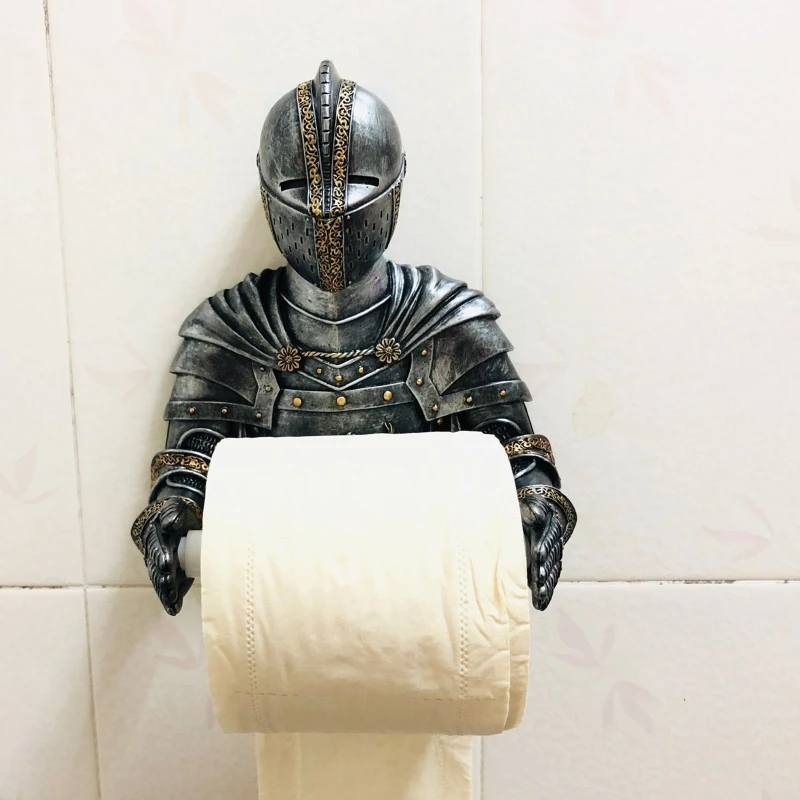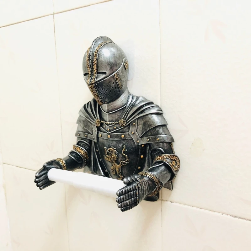 Medieval Statue Knight Toilet Paper Dispenser Wall Mounted Tissue Roll Holder Gothic Decor Paper Towel Holder Dropshipping