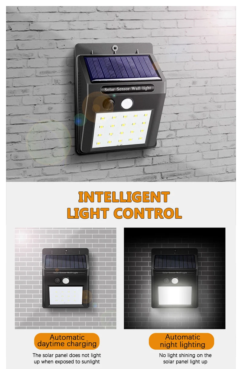 Modern LED Solar Wall Lamp Outdoor PIR Motion Sensors Waterproof Light Courtyard Decoration Lightsporch Garden Fence Path Lights
