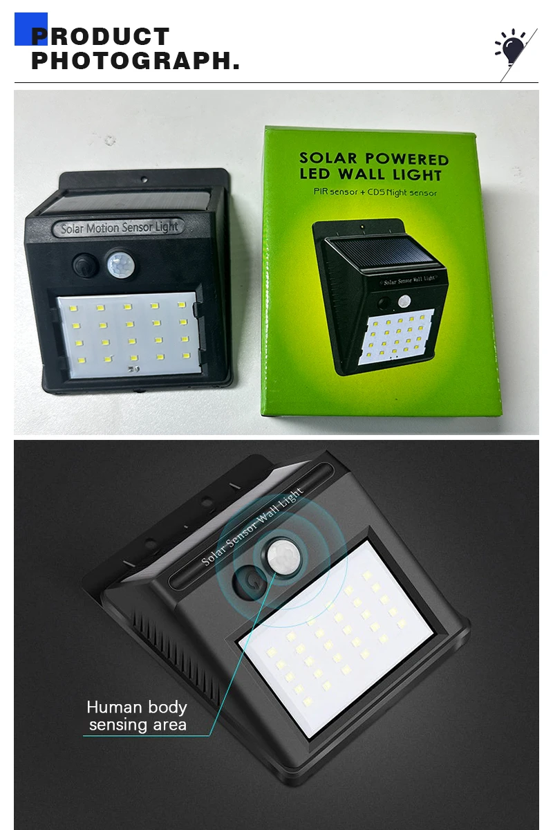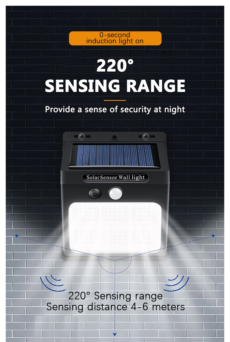 2. Automatic start: The PIR motion sensor can continuously scan moving heat sources within its detection range. When someone appears in the area, the indicator light will automatically turn on.